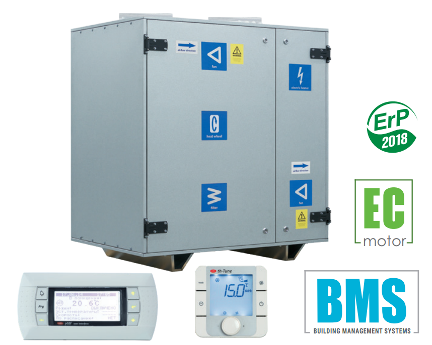 W centralach zastosowano wentylatory z silnikami komutowanymi elektronicznie typu EC, z zewnętrznym wirnikiem i łopatkami zagiętymi do tyłu. Tego typu silniki są obecnie najbardziej innowacyjnym rozwiązaniem w dziedzinie oszczędzania energii elektrycznej. Zintegrowany system elektroniki w silnikach EC umożliwia płynną regulację w pełnym zakresie prędkości obrotowej wentylatora przy zachowaniu wysokiej sprawności. Silniki komutowane elektronicznie osiągają sprawność do 90%. Zastosowanie silników EC pozwoliło zmniejszyć zużycie energii elektrycznej od 1,5 do 3 razy, przy zachowaniu wysokiej sprawności oraz niskiego poziomu hałasu.