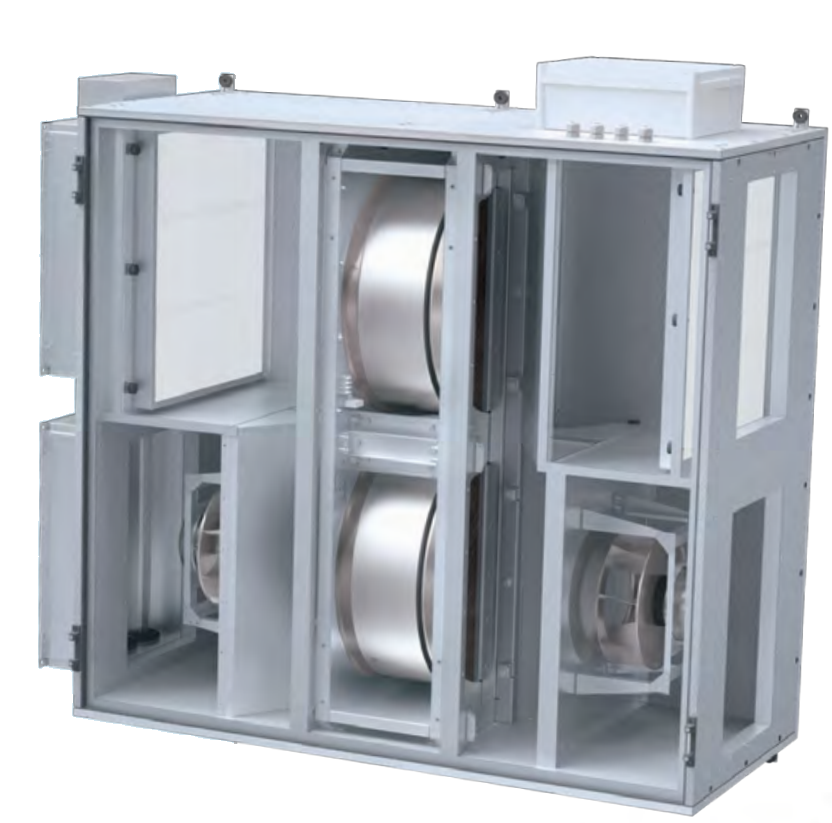 Centrala wentylacyjna z odzyskiem ciepła to nowoczesne urządzenie wentylacyjne zapewniające mechaniczną wymianę powietrza w pomieszczeniach z jednoczesnym jego filtrowaniem. Konstrukcja wymiennika płytowego umożliwia pozyskanie energii cieplnej z powietrza wywiewnego do ogrzania powietrza nawiewanego z zewnątrz. Centrale są przeznaczone do energooszczędnej wentylacji obiektów oraz montażu z przewodami wentylacyjnym o przekroju 500x300 mm.