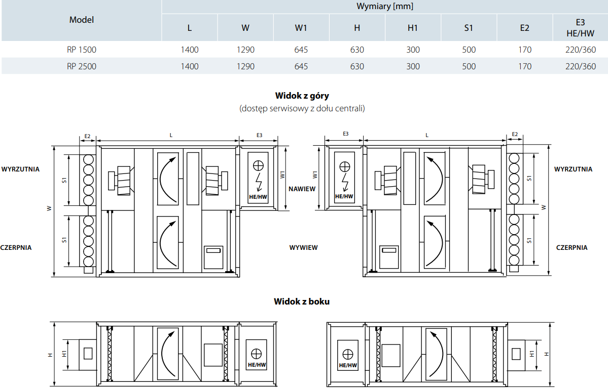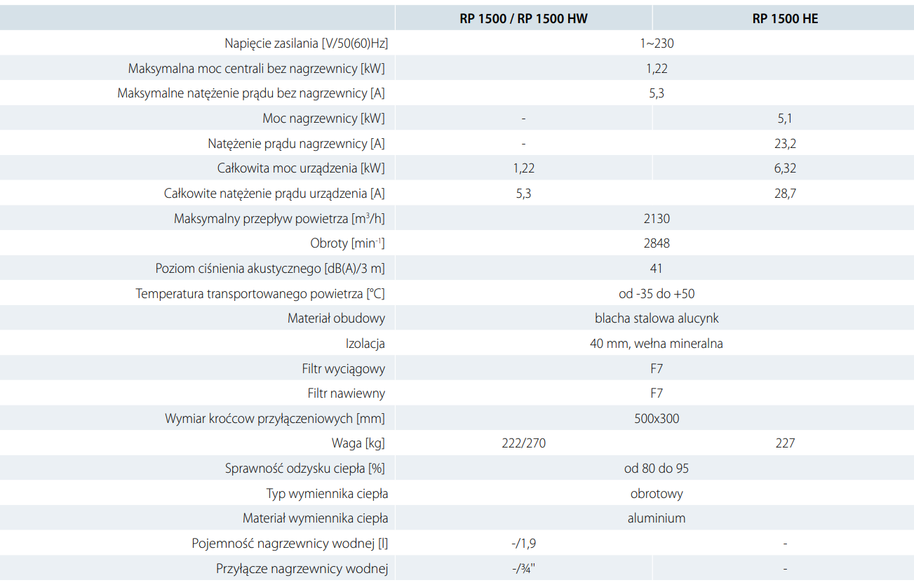 RP HE modele są wyposażone w nagrzewnicę elektryczną wtórną.