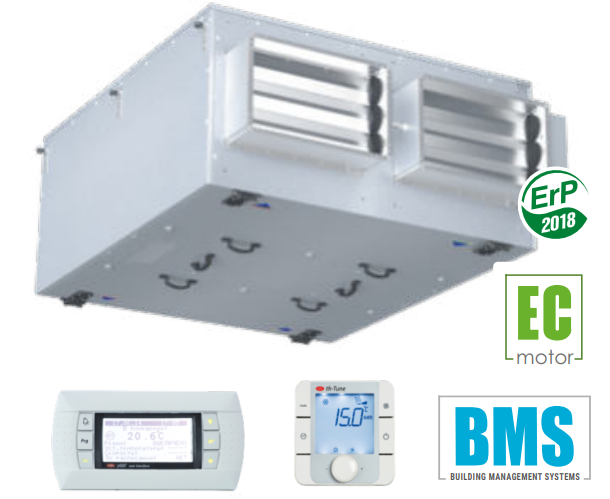 W centralach zastosowano wentylatory z silnikami komutowanymi elektronicznie typu EC, z zewnętrznym wirnikiem i łopatkami zagiętymi do tyłu. Tego typu silniki są obecnie najbardziej innowacyjnym rozwiązaniem w dziedzinie oszczędzania energii elektrycznej. Zintegrowany system elektroniki w silnikach EC umożliwia płynną regulację w pełnym zakresie prędkości obrotowej wentylatora przy zachowaniu wysokiej sprawności. Silniki komutowane elektronicznie osiągają sprawność do 90%. Zastosowanie silników EC pozwoliło zmniejszyć zużycie energii elektrycznej od 1,5 do 3 razy, przy zachowaniu wysokiej sprawności oraz niskiego poziomu hałasu.