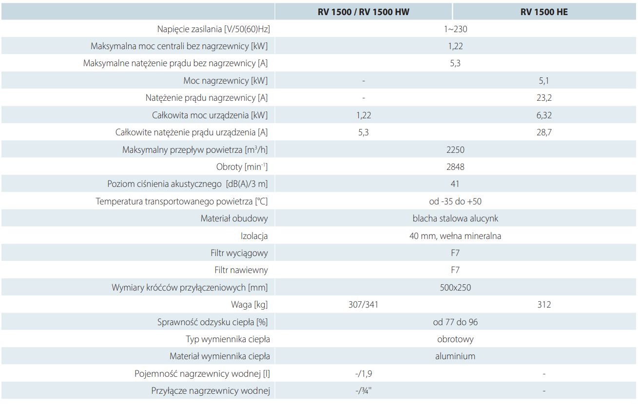 RV HE modele są wyposażone w nagrzewnicę elektryczną wtórną.