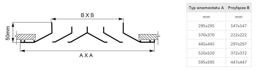 Anemostaty kwadratowe z czterostronnym wypływem powietrza