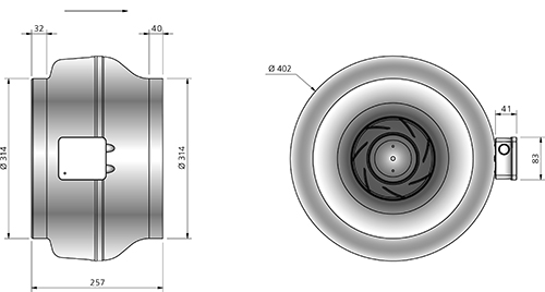 ● Wentylator kanałowy z okrągłym podłączeniem.