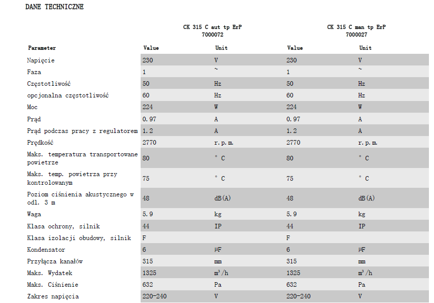 CK 315 C ErP - maksymalna wydajność 1325 m³/h