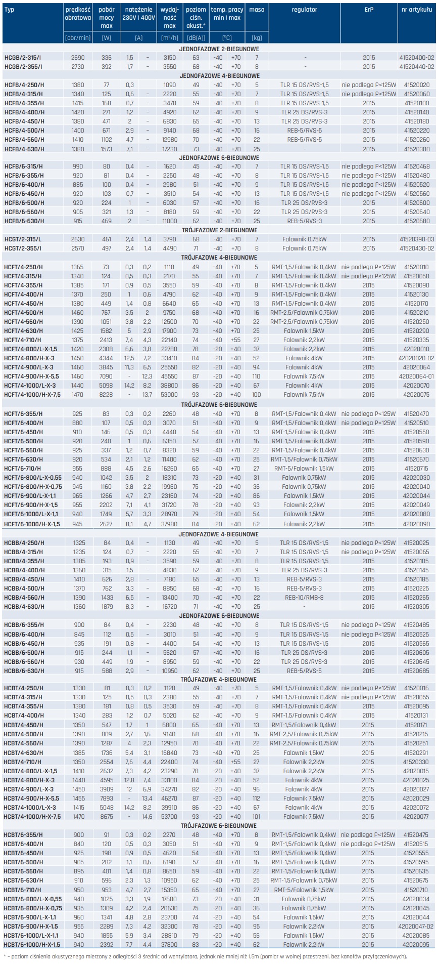 Wentylatory mogą pracować w temperaturze -400C do +700C (modele Ø800 - Ø1000 zakres temperatury -200C do +400C).
