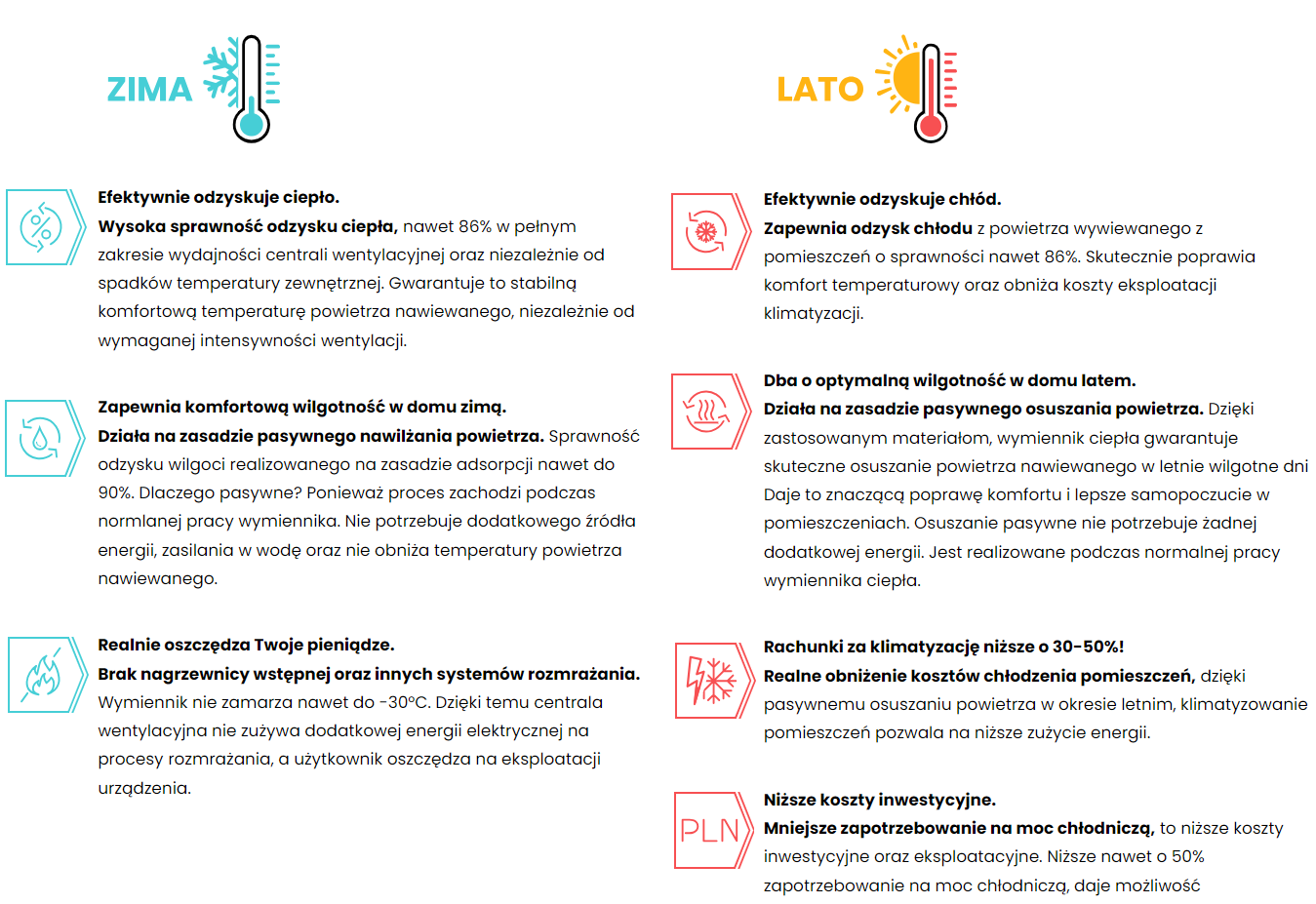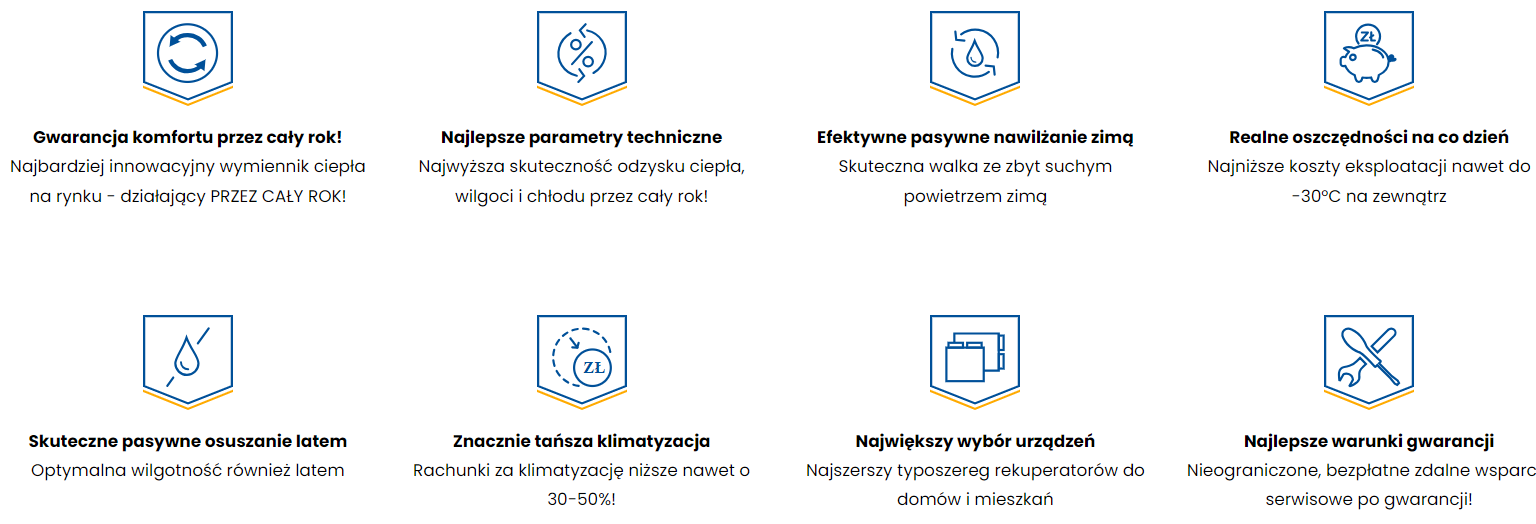 Efektywny odzysk wilgoci zapewnia doskonały komfort w pomieszczeniach.