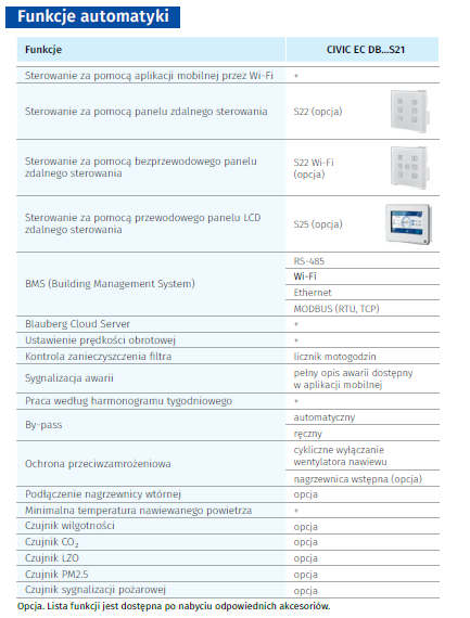 - Centrale CIVIC EC DB… S21 są wyposażone we wbudowany system sterowania.