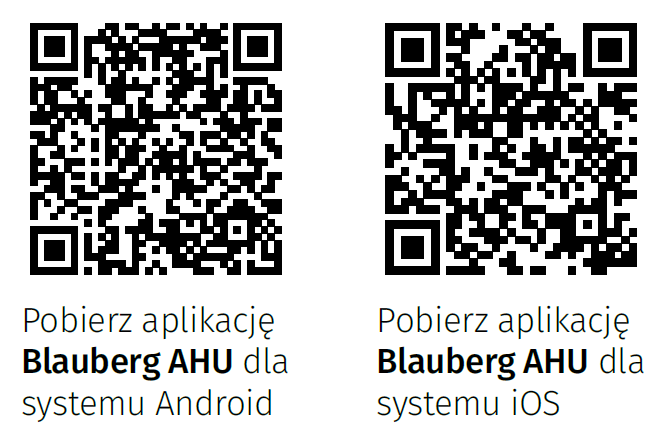 - Aplikacja Blauberg AHU umożliwia sterowanie centralą poprzez Wi-Fi.