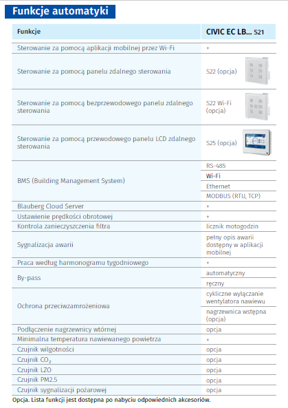 - Centrale CIVIC EC LB… S21 są wyposażone we wbudowany system sterowania.