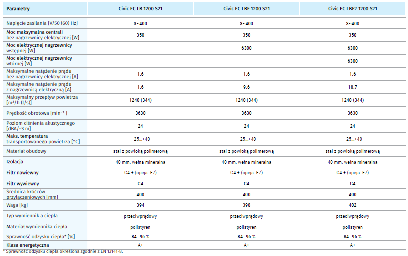 Civic EC LBE 1200 S21 - centrala wentylacyjna