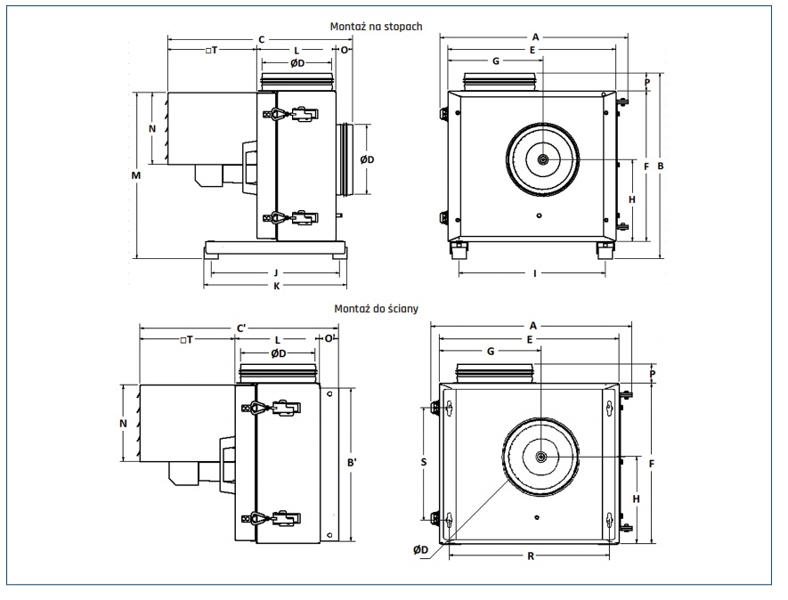 - wentylator na ssaniu i na tłoczeniu wyposażony jest w króćce przyłączeniowe z gumowymi uszczelkami,