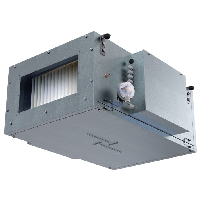 Centrala nawiewna MPA EC zapewnia filtrację, podgrzanie świeżego powietrza i nawiew powietrza do pomieszczeń.