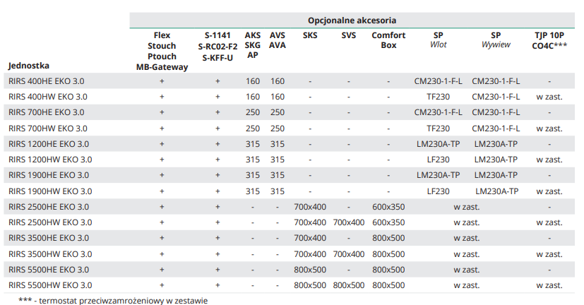 - RIRS 2500-5500 H EKO 3.0 są dostarczane w trzech częściach.