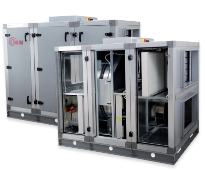 Dostępne są w 7 rozmiarach (interwał przepływu powietrza 430-6000 m3/h) z różnymi nagrzewnicami dla różnych stref klimatycznych.