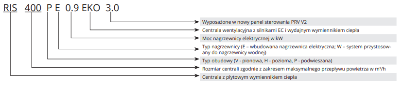 RIS P EKO 3.0 to gama urzadzeń odzysku ciepła wyposażonych w wysokowydajne przeciwprądowe wymienniki ciepła i cechujące się niewielką wysokością. Instalacje są przeznaczone do montażu podsufitowego w celu zaoszczędzenia miejsca. Występują w 5 rozmiarach (interwał przepływu powietrza 420-2500 m3/h) z różnymi nagrzewnicami dla różnych stref klimatycznych.