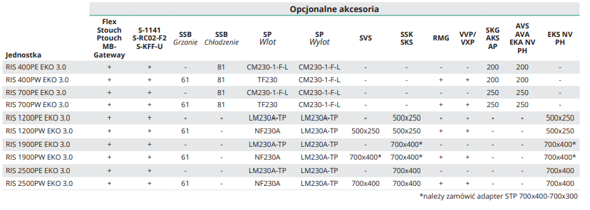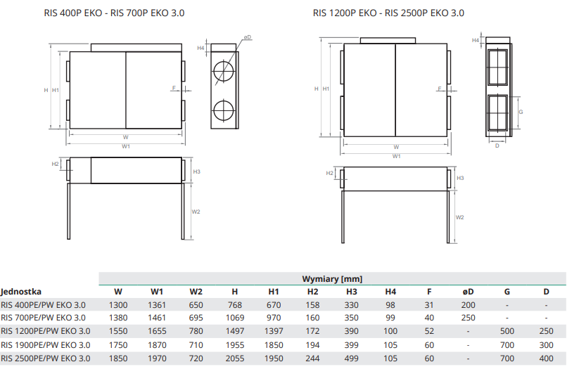 - RIS 400-700 P EKO 3.0 - malowana proszkowo obudowa biała RAL 9016; RIS 1200–2500 V EKO 3.0 - malowana proszkowo obudowa szara RAL 7040. ›