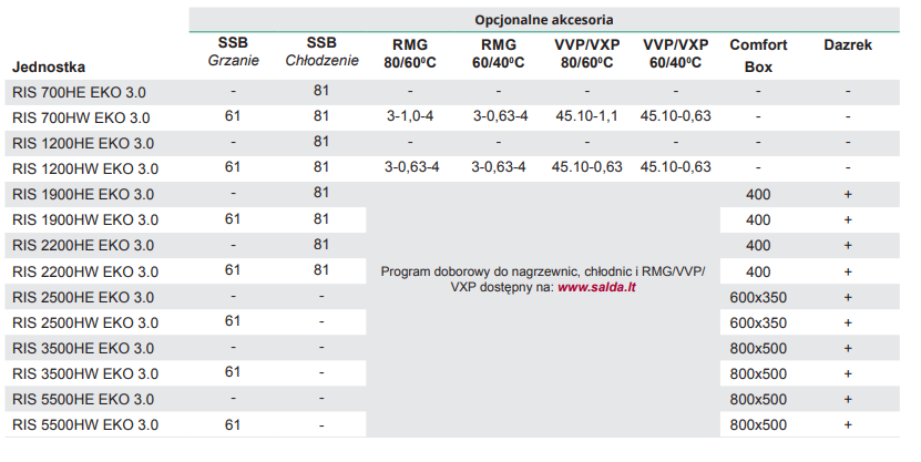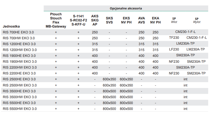 *Systemy RIS 1900-5500 H EKO 3.0 można opcjonalnie wyposażyć w sterowniki SIEMENS Climatix