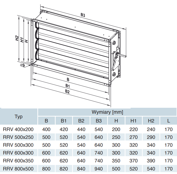 RRV-V500x250-TF230x1 - zestaw przepustnic RRV 500x250