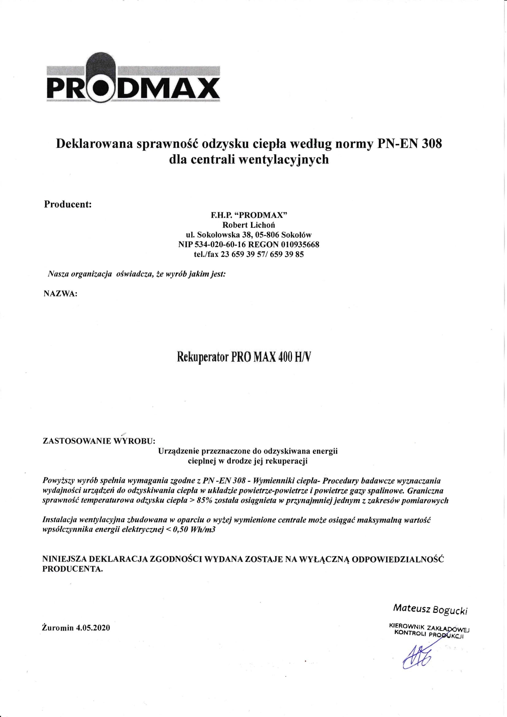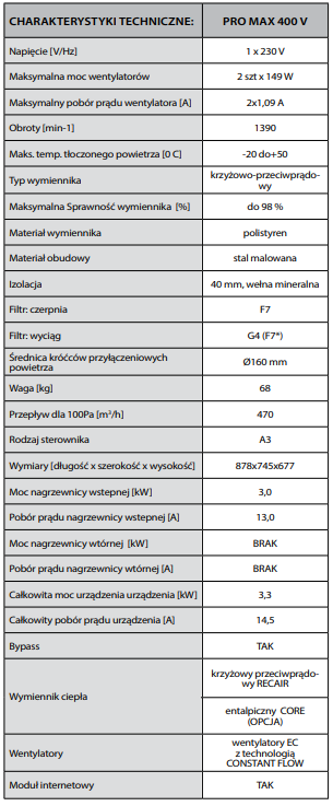 Rekuperator PROMAX 400 V CLASSIC