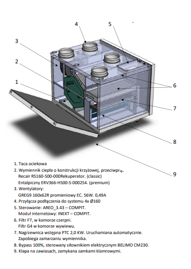 CLASSIC – Wymiennik RS160-500-000, nagrzewnica wstępna, moduł internetowy