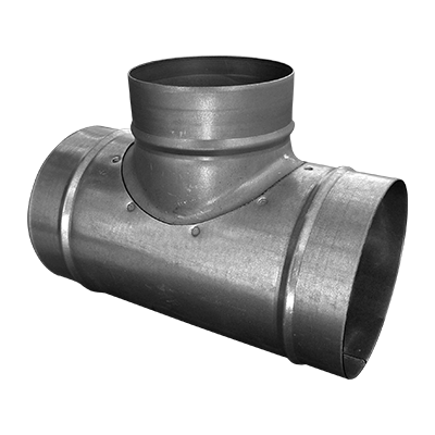 Trójnik tłoczony z blachy ocynkowanej. Średnica przelotu=355mm, odejście pod kątem 90 stopni o średnicy 200mm