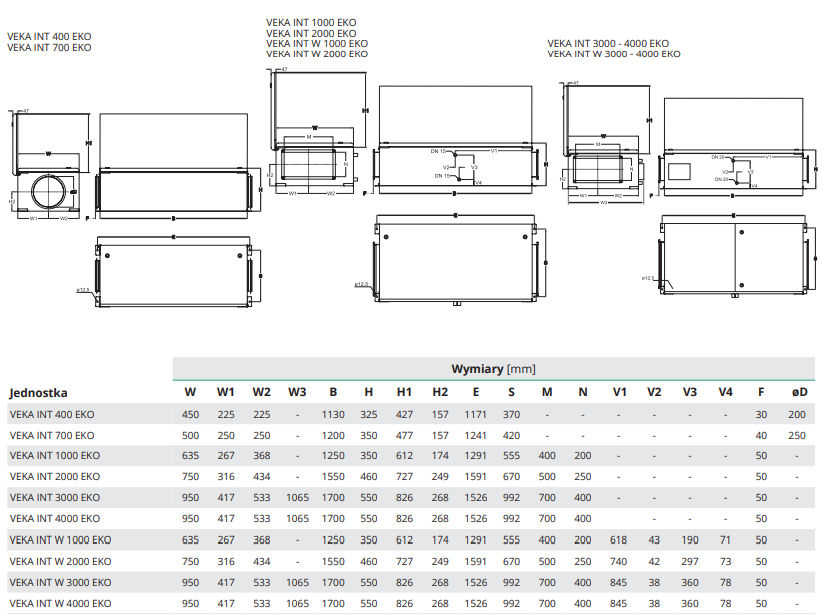 Systemy VEKA INT EKO są lekkie i można je montować we wszystkich położeniach, nawet w najwęższych miejscach. Systemy te są odpowiednie do różnych stref klimatycznych – każdy model ma kilka opcji nagrzewnicy elektrycznej, a modele 1000+ mają opcje nagrzewnicy wodnej. Wszystkie przepustnice są wbudowane, aby automatycznie odcinać dopływ powietrza do pomieszczeń.