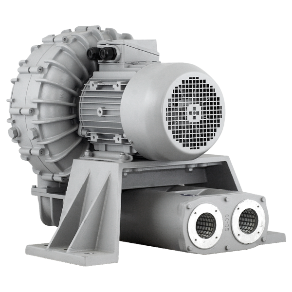 Dwustopniowy wentylator boczno-kanałowy o napędzie bezpośrednim przeznaczony do bezolejowego transportu nieagresywnych i niewybuchowych gazów lub do wytwarzania nad i podciśnienia.