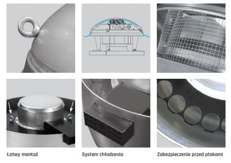 Wentylator dachowy przeznaczony do pracy ciągłej w wysokich temperaturach. Ze względu na wysoką odporność temperaturową zalecane zwłaszcza jako odciągi z nad rusztów, z okapów w przemyśle mięsnym oraz gastronomii.