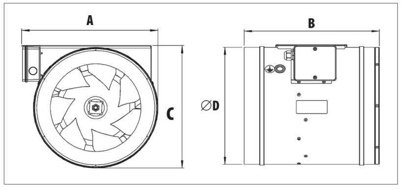 - oszczędność przestrzeni - unikalna konstrukcja wirnika i dyfuzora sprawia, że możliwe było zastosowanie obudowy na całej swej długości dokładnie odpowiadającej średnicy przewodu, w którym ma być zainstalowany wentylator. Dzięki temu można projektować instalacje zajmujące mniej cennego miejsca,