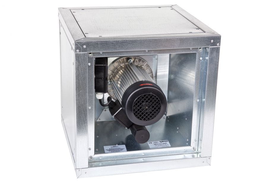Promieniowy wentylator kanałowy z silnikiem oddzielonym od strumienia przepływającego powietrza. Obudowa w najwyższej klasie szczelności L1 (wg. EN 1886), wykonana z galwanizowanej blachy stalowej ma kształt sześcianu składającego się z ramy i paneli bocznych, izolowanych (poza panelem wlotowym) warstwą wełny mineralnej o grubości 30mm. W wykonaniu standardowym wlot stanowi wyproflowany pierścień bez króćca przyłączeniowego. Wylot uzyskuje się przez zdjęcie jednego z izolowanych paneli bocznych. Wylot można skonfgurować względem wlotu tylko pod kątem 90°. Po stronie wylotu zastosować można panele USB wyposażone w okrągłe króćce przyłączeniowe lub panele USR z redukcją do przyłącza okrągłego. Po stronie wlotu istnieje możliwość montażu okrągłych króćcy wlotowych ASB. W celu ograniczenia dodatkowych oporów, które powstaną przy stosowaniu powyższych paneli i króćców należy zwrócić szczególną uwagę na zachowanie odcinków prostych kanałów oraz króćców o jak największej średnicy przyłączeniowej. W podstawie wentylatora zlokalizowany został króciec skroplin (gwint wewnętrzny). Instalacja powinna być wyposażona w stosowne filtry / łapacze tłuszczu.